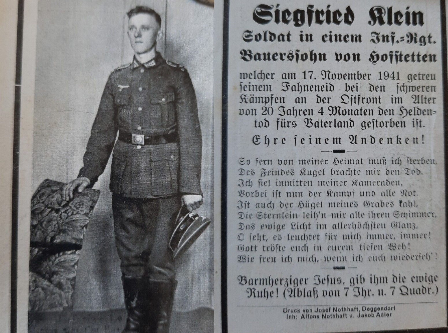 | Klein Siegfried | 17.11.41 gefallen Burinowa, I.G.K., Grablage Westteil Burinowa (Schtz.); | geb.15.7.21 | ||
