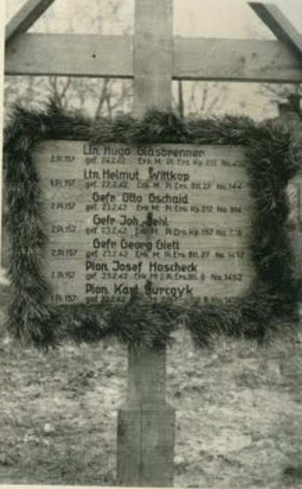 | Glasbrenner Hugo | am 24.2.42 durch Pzgr.Volltreffer Teterewino gefallen (Lt.); | geb.: 27.10.13 | ||