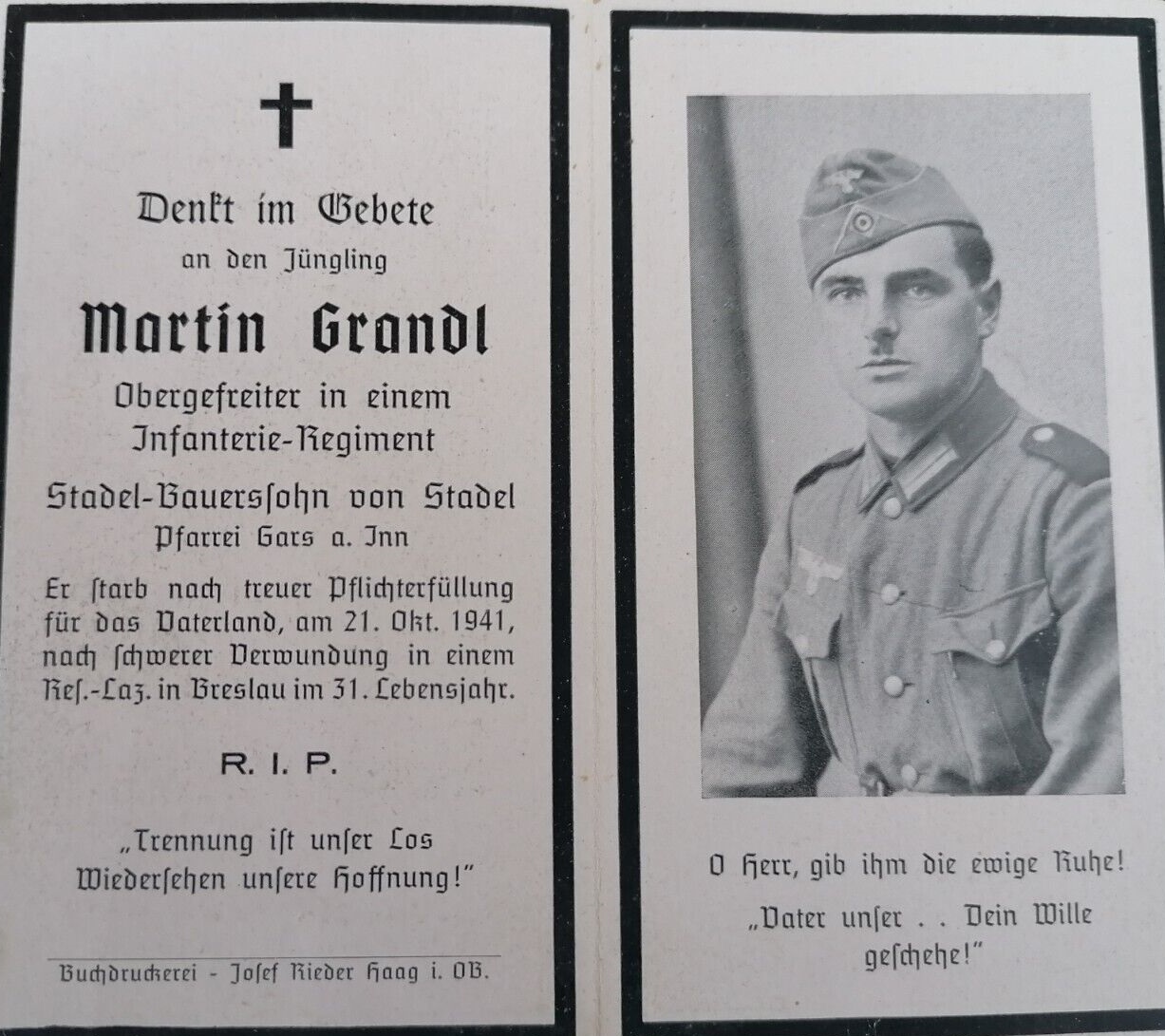 | Grandl Martin | 21.10.41 verstorben Res.Laz.Breslau IX(Univ.Kliniken) Gr.Spl.re.Auge (Ogfr.); | geb.3.2.10 | ||