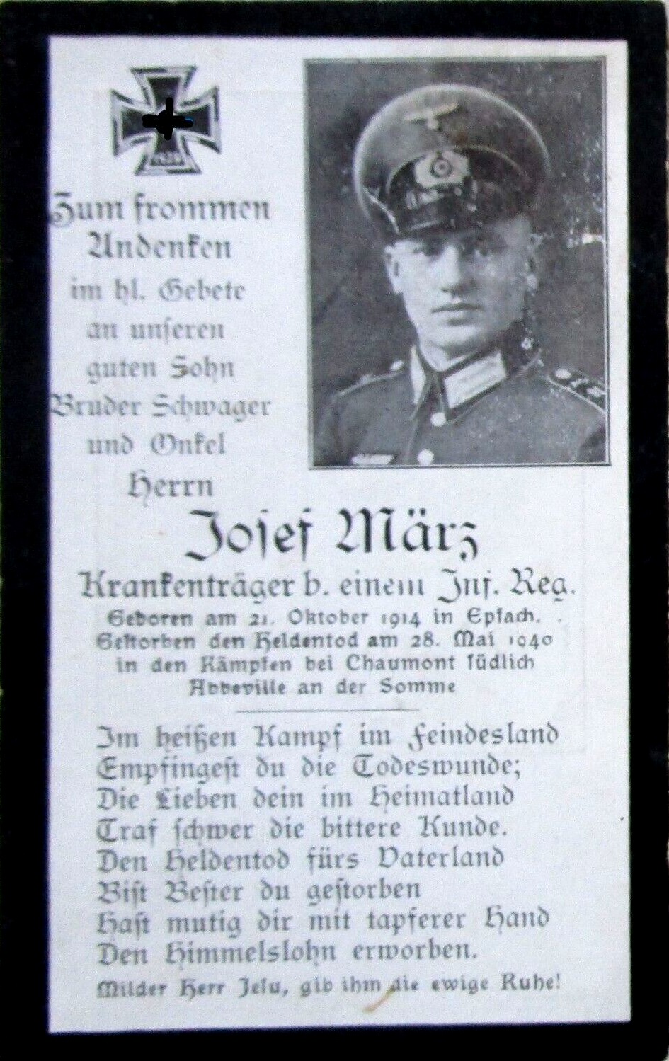 | März Josef | Krankenträger | 28.5.40 gefallen Chaumont (Gefr.); | ||