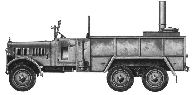 | schwerer Wasserkesselkraftwagen oder mittl.Lkw mit Grosswasserbehälter | Backanhänger (Sd.Ah.106) | |||
