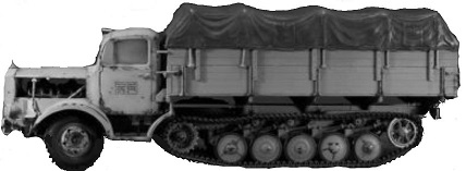 | 2cm Flak oder Flakzwilling auf Sd.Ah.52 oder 58* | Gleisketten-Lkw.4,5t, offen (Sd.Kfz.3/5) | Lkw.3t, offen, gl.für Muntiion und Gerät* | ||